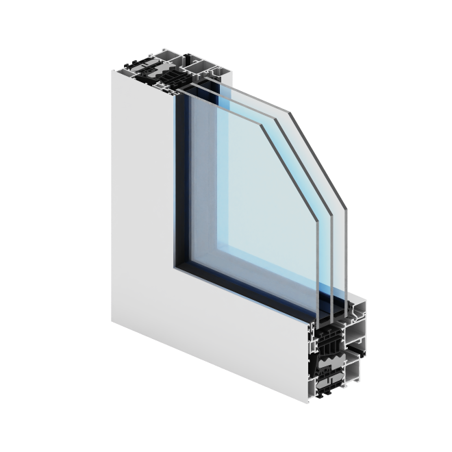 - Introducing a triple-chamber window system renowned for its outstanding thermal insulation, featuring a meticulously designed frame shape that extends the full height of the sash profile.